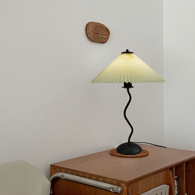 This cream pleated vintage minimalist lamp features an elegant pleated lampshade combined with a soft, creamy hue, creating a timeless vintage aesthetic. The pleated design allows the warm light to diffuse evenly, reducing glare while enhancing the cozy atmosphere. Crafted from high-quality materials, this lamp is both stylish and durable, making it a perfect addition to bedrooms, living rooms, or study areas. Whether used for functional lighting or as a decorative accent, it seamlessly blends into various home styles.