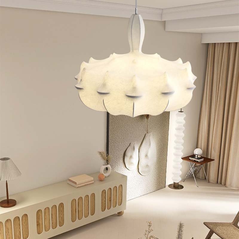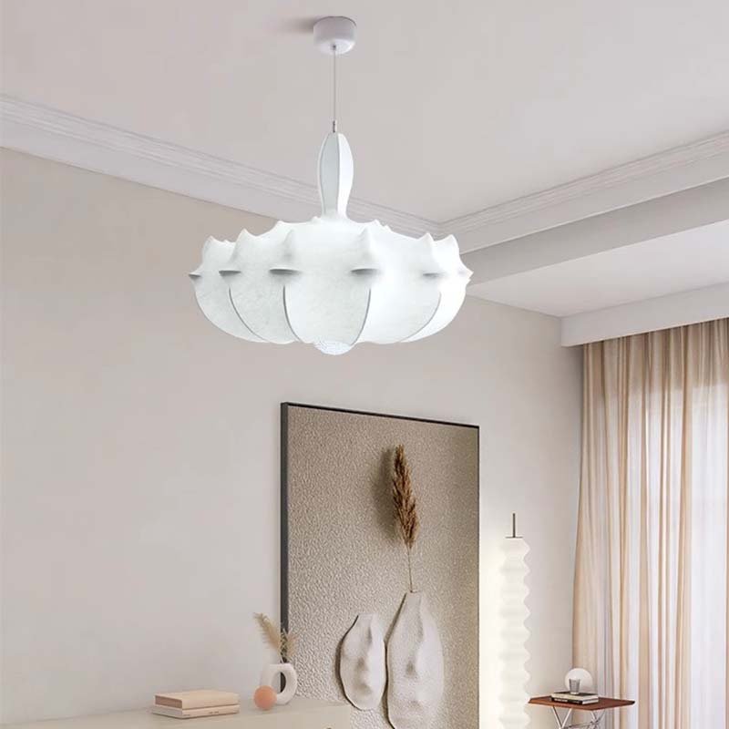 The Creative Silk Pendant Light features a sleek, modern design with a silk-like finish, offering a touch of sophistication and a warm, inviting glow to any room.